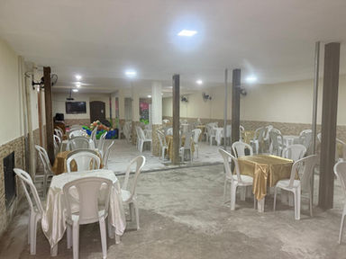 * Salão principal com 20 mesas e 80 cadeiras de plástico